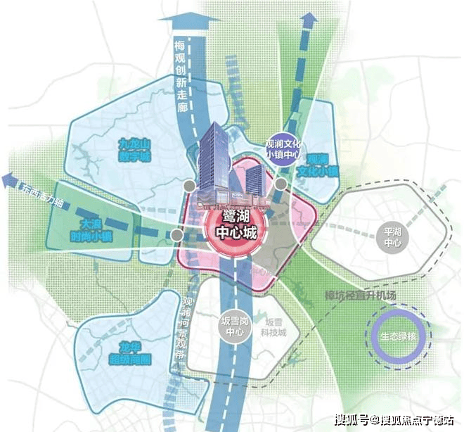 龙华产核——鹭湖中心城地处龙华万亿级数字经济圈、梅观创新走廊的交汇中心,亦是龙华六大重点片区的核心枢纽
