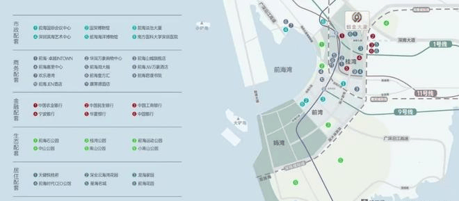 6分钟抵达前海湾站三线地铁枢纽,25分钟接驳深圳宝安国际机场,40分钟直达深圳北站,深中通道、深惠城际线与穗深城际线环伺,实现一小时湾区商务圈。