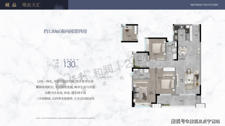 ④、出售面积:130平米4房2卫2厅,总价578万起