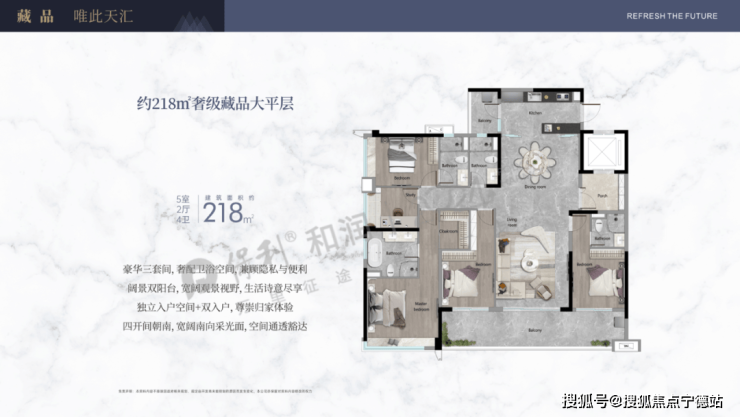 7、出售面积:218平米5房4卫2厅,总价1088万起