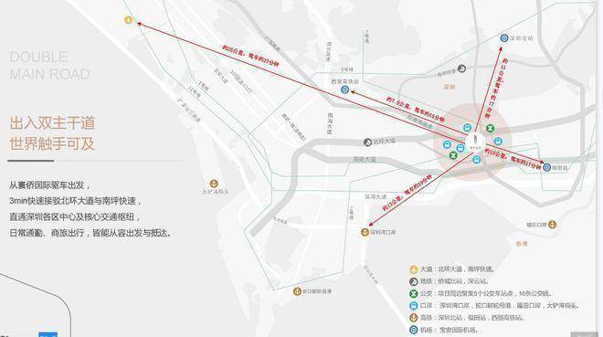 海陆空港立体枢纽,外联交通出行便捷毗邻北环大道、南坪快线,车行15分速抵福田、南山中心区,半小时通达全城