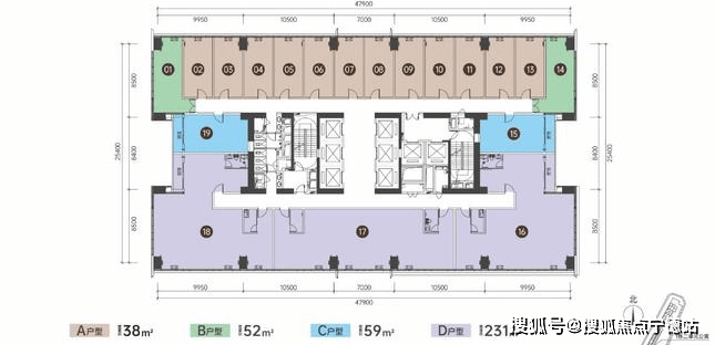标准层面积:1381㎡