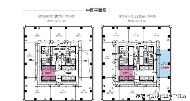 中庭楼层:24-40F(每两层一个中庭)
