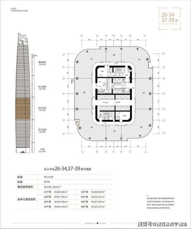 电 梯:35部日立电梯,其中18部双轿厢办公客梯,梯速8m/s